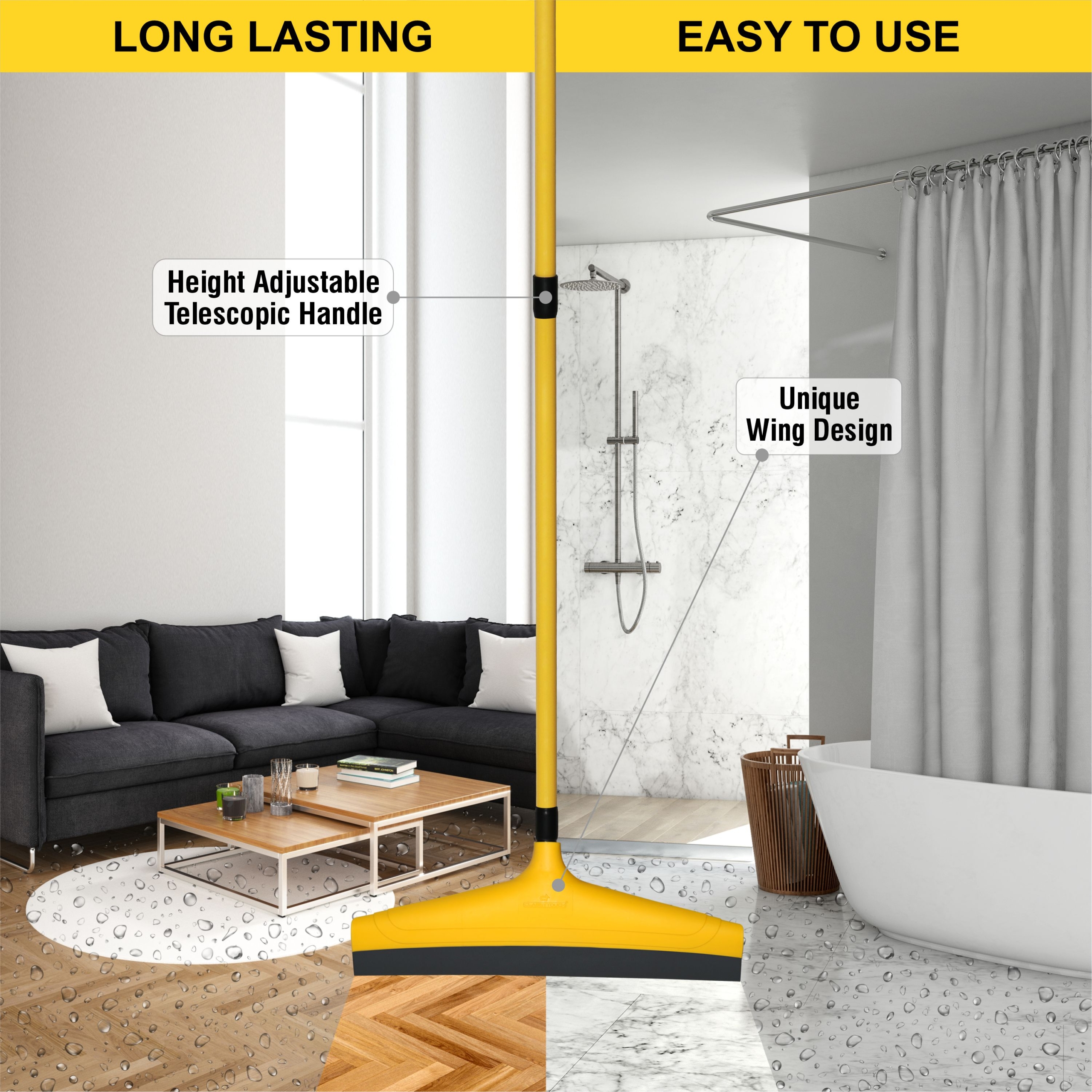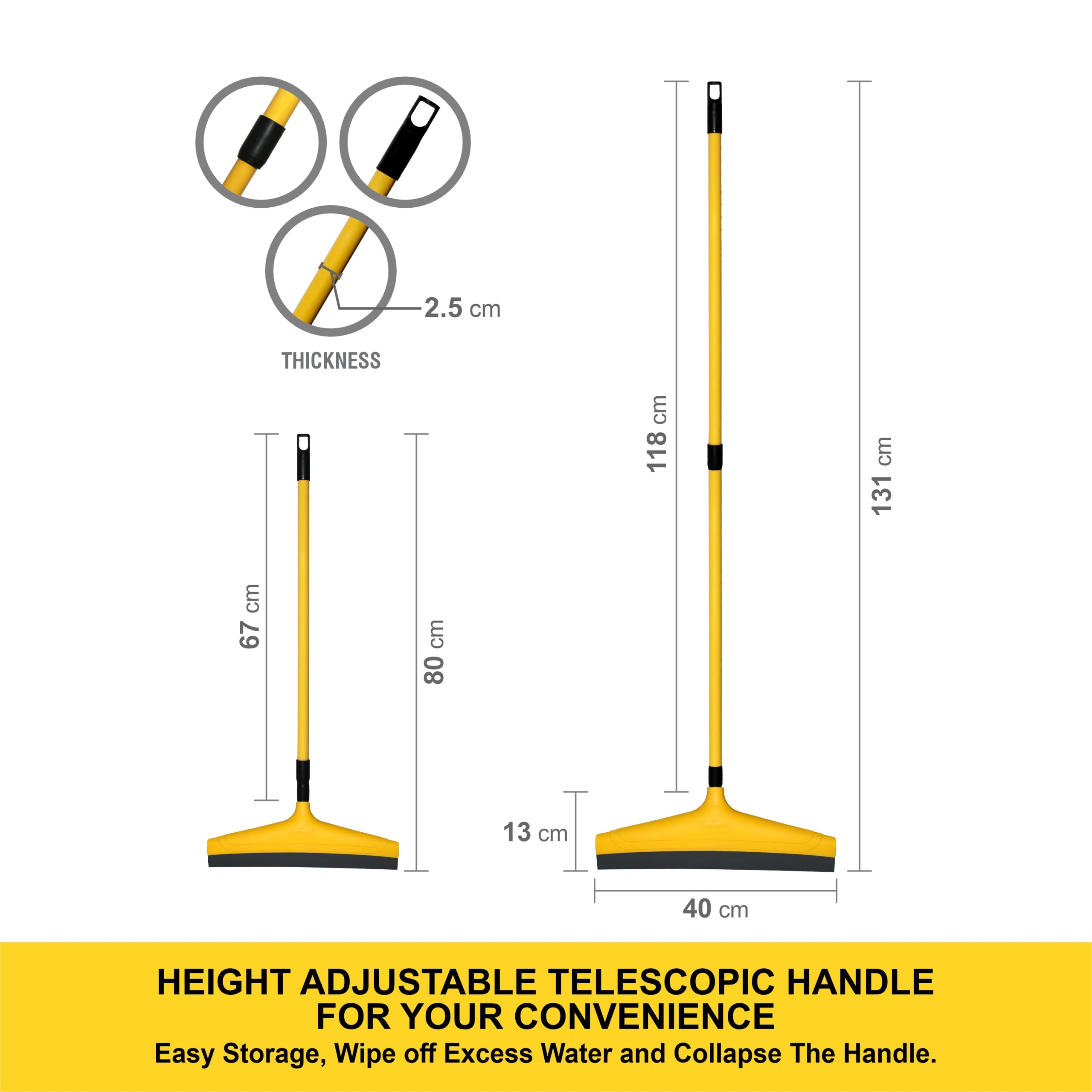 Height adjustable telescopic handle ; helps in easy manoueverability and helps you adjust size as per your height and reach required