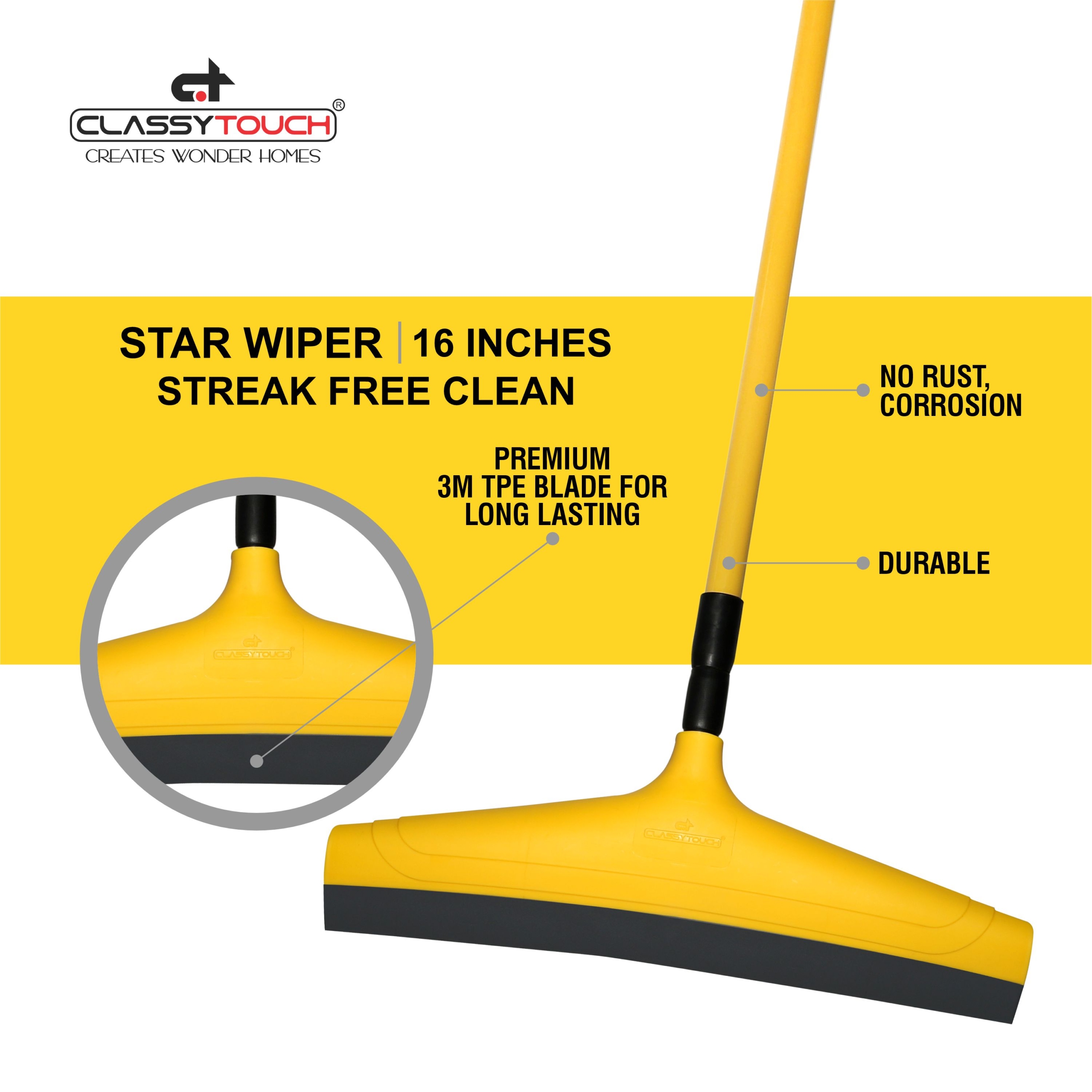 Add to WishlistAdd to Compare“Classy Touch Wiper has multipurpose uses. It is a cleaning tool with surprising cleaning abilities and functions. It cleans dust, dirt and stains from glass windows, metal and wooden surfaces. We often splurge to enhance the beauty of our home, right from lovely furniture in Spare Room/Guest Room to time saving appliances in the kitchen. Keeping home clean and hygienic is an everyday necessity. A healthy and hygienic surrounding helps maintaining good personal heath. All our products are designed and manufactured with long term durability in mind. You buy them and they are sure to give you high performance and easy cleaning. ”