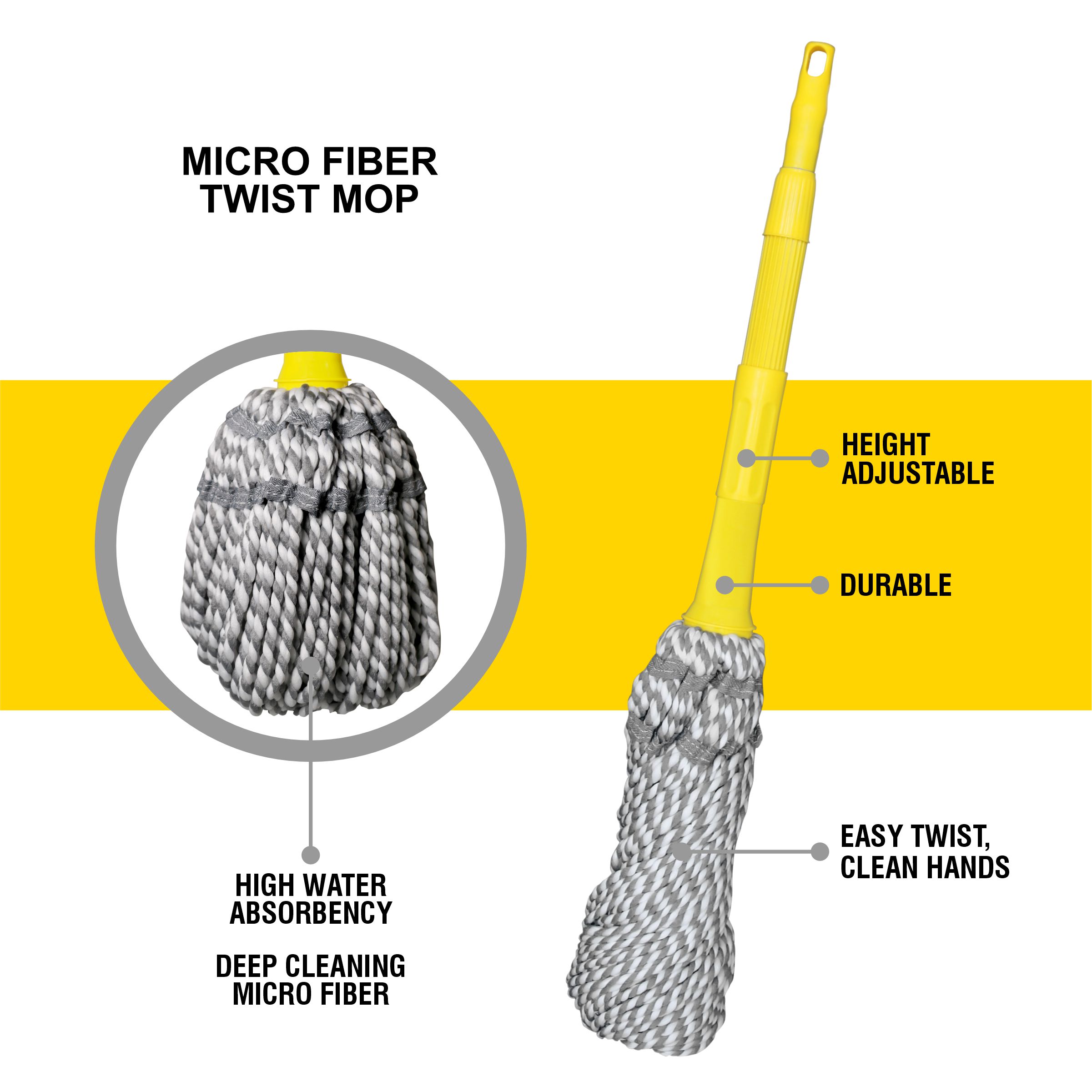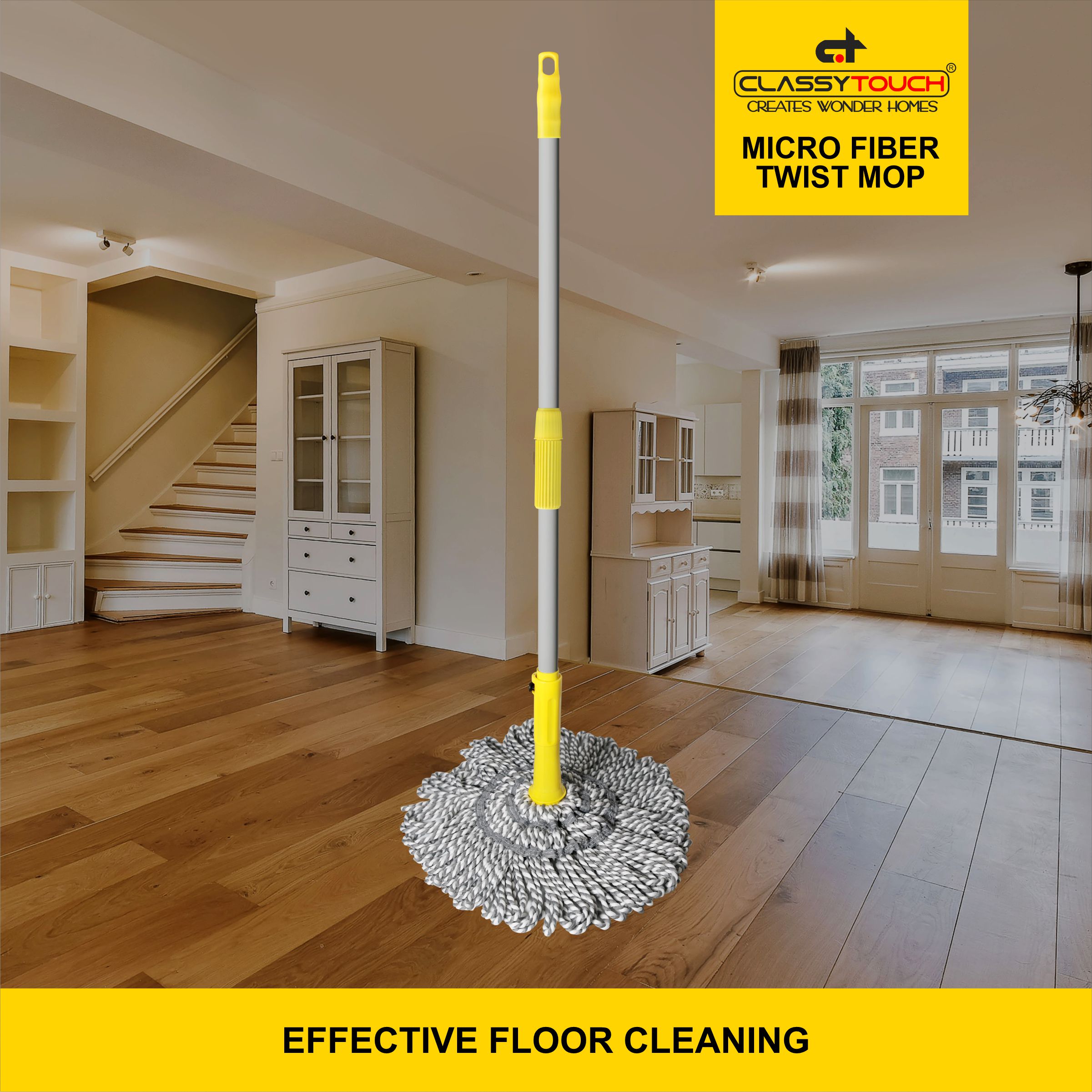 CLASSY TOUCH Microfiber Twist Mop for Floor Cleaning,Microfiber Squeeze Twist mop Stick for Cleaning, Pocha for Floor Cleaning Dust Mop with Extendable Stainless Steel Handle(YELLOW)