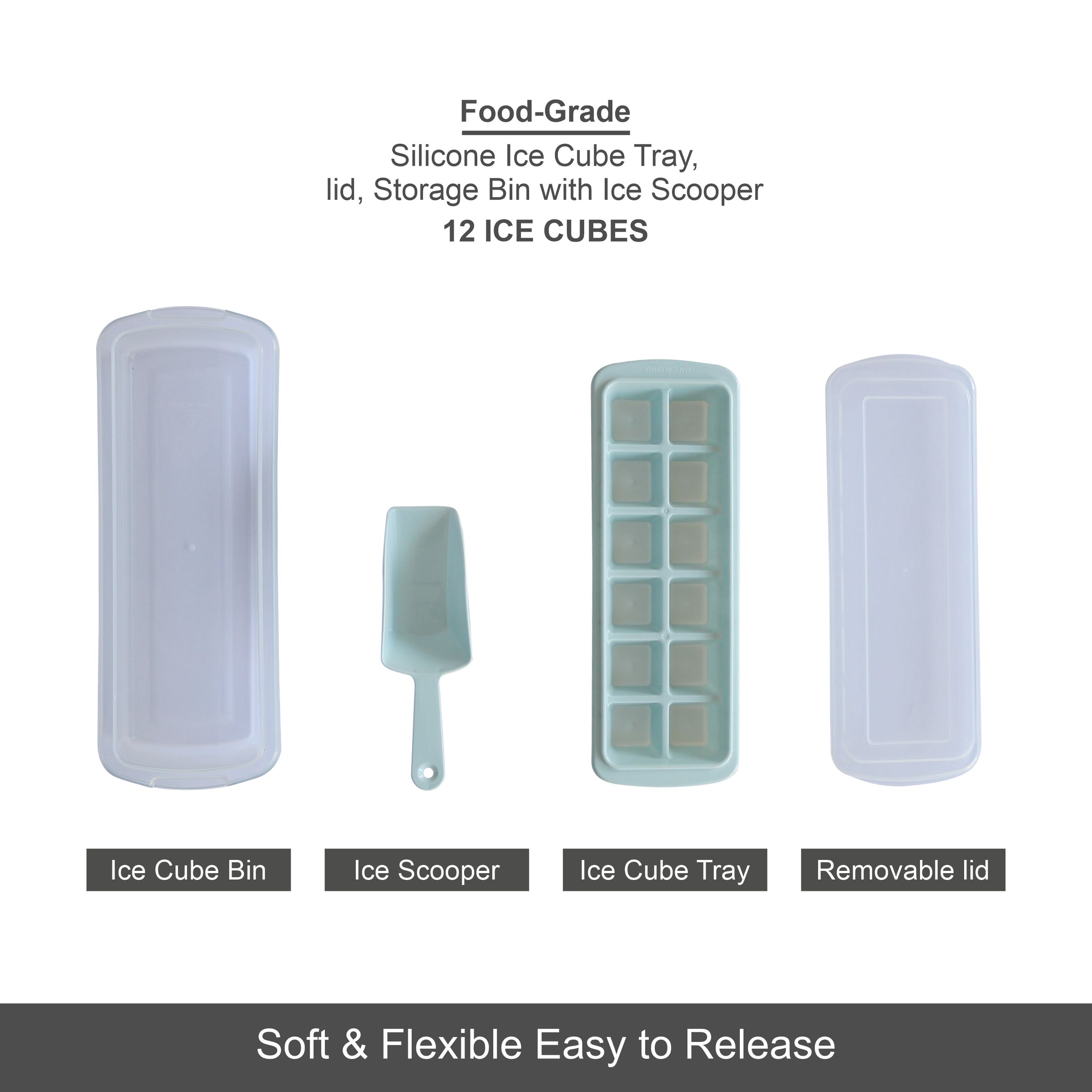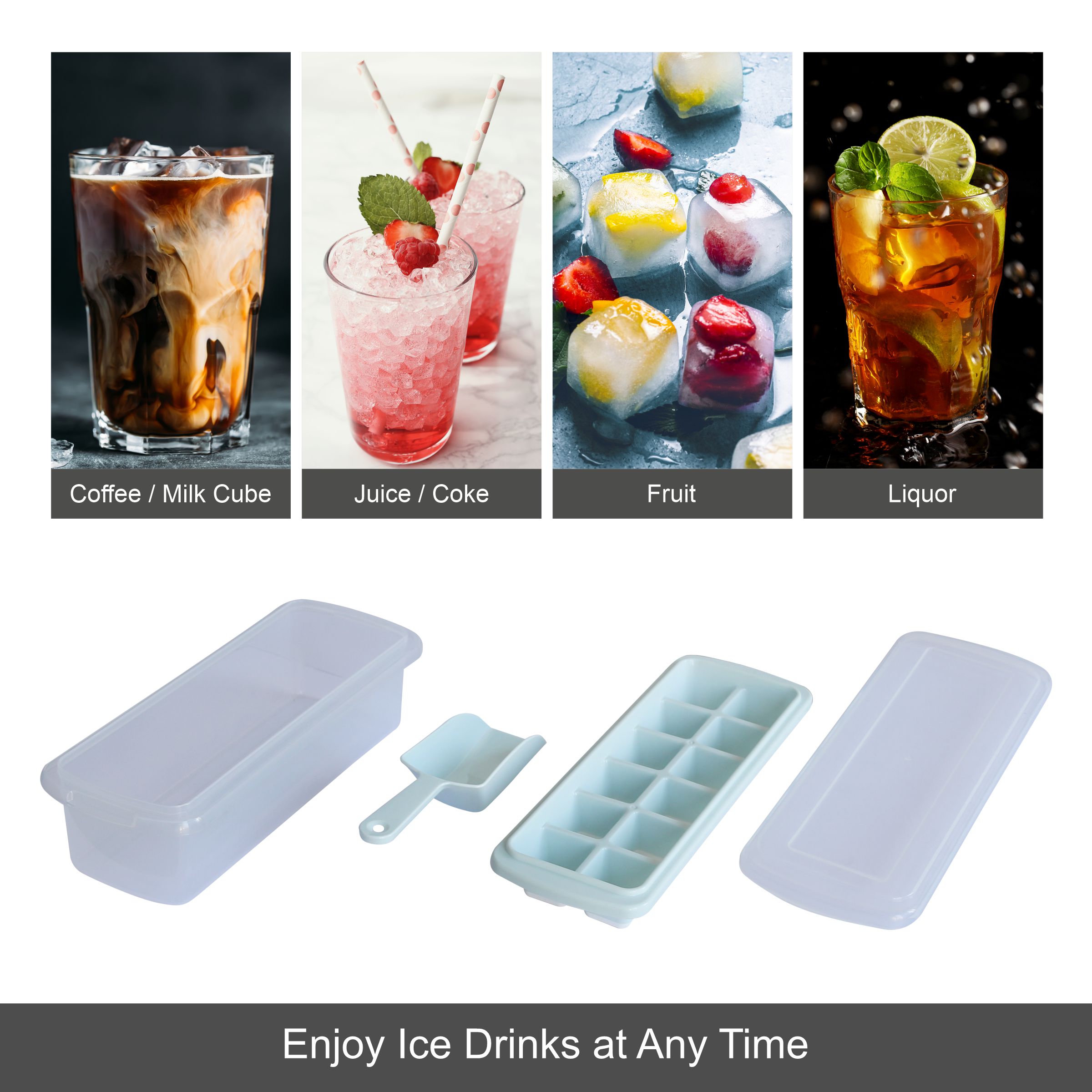 ★ Multi function Set: Each ice tray pack is equipped with everything you need to make ice in the refrigerator, including an ice tray with a lid, an ice spoon, and a trash can. Freeze your ice cubes and pour into the ice box for easy access.