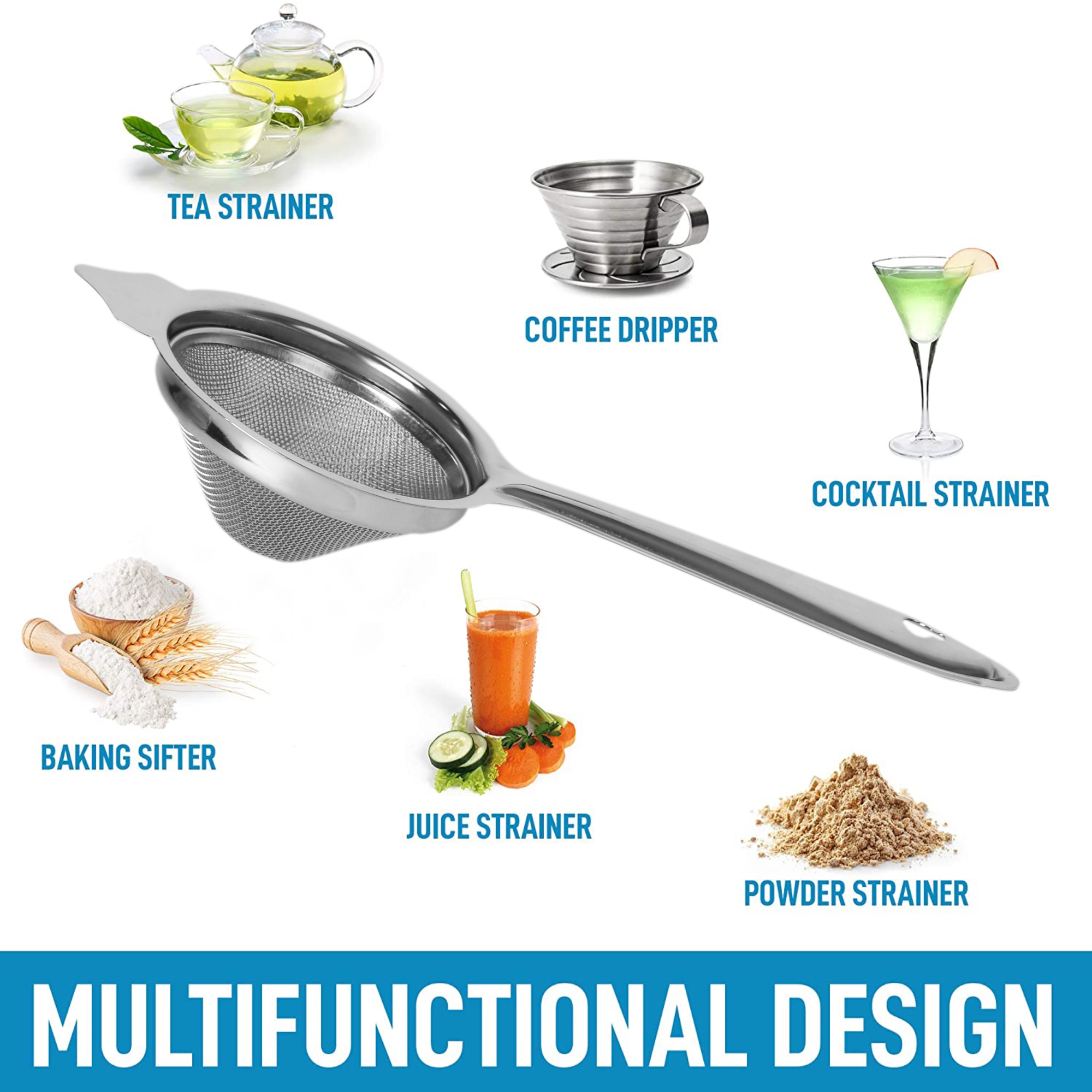 ➦We Added Comfortable, Non-Slip, Heat-Proof Handles For Easier Handling And Safety. We Made The Wire Mesh Finer To Strain & Sift The Smallest Foods Including Almond Milk, Yogurt, Smoothies, Soups, Quinoa, And Many More. We Sealed The Steel Rim To Prevent Food From Getting Stuck Between It And The Mesh.