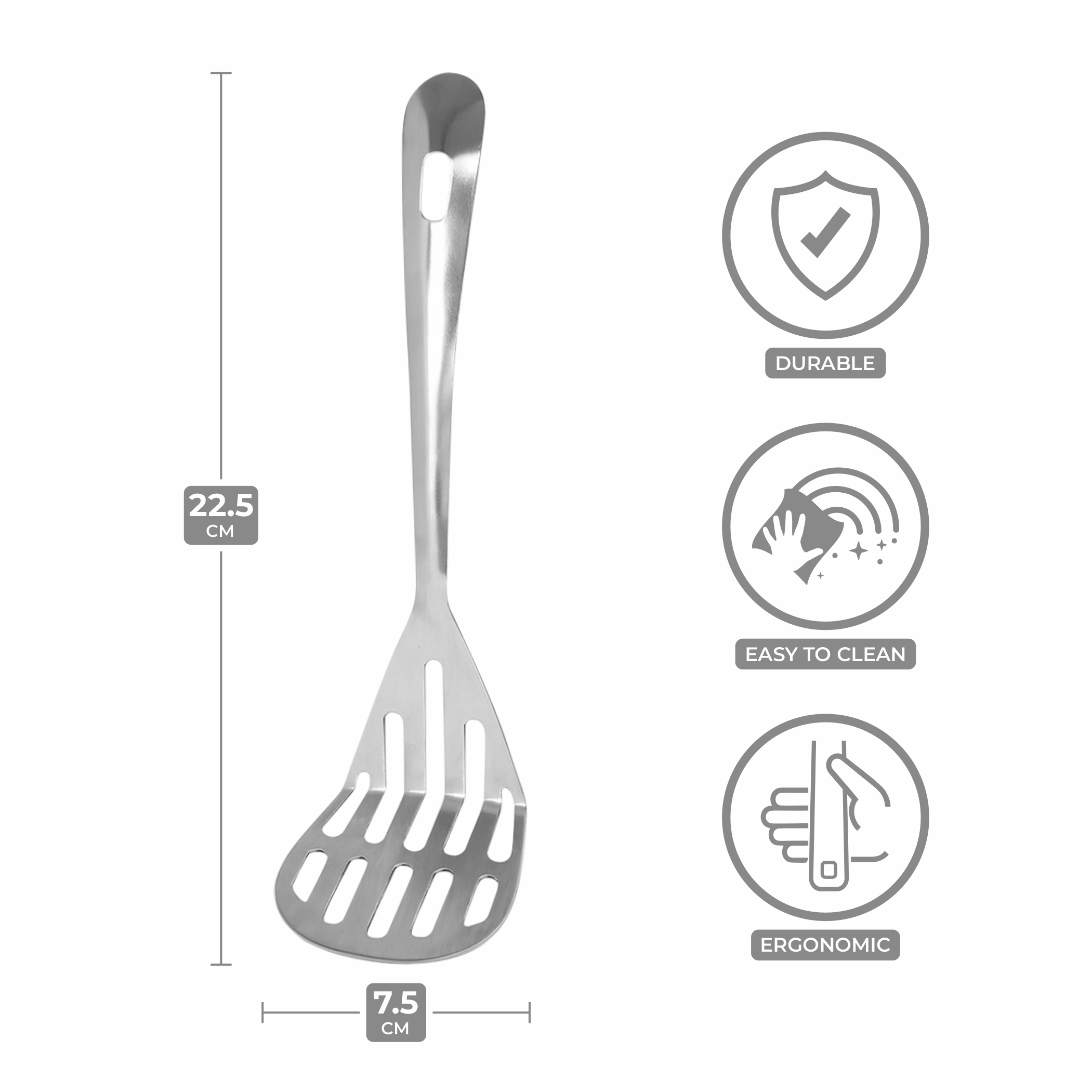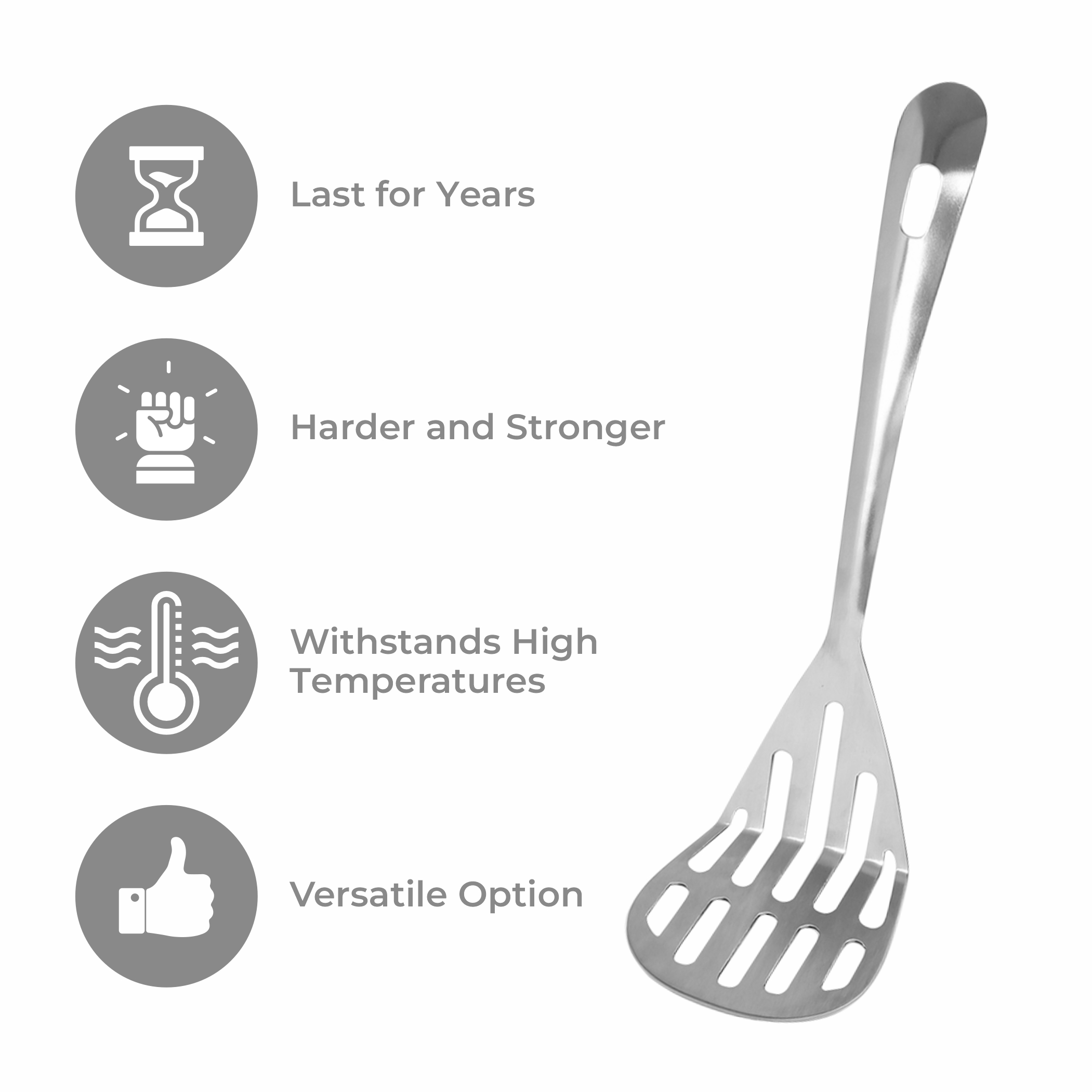 PREMIUM MATERIAL: Crafted from high-quality stainless steel, this slotted turner spoon offers exceptional durability and long-lasting performance for everyday cooking tasks