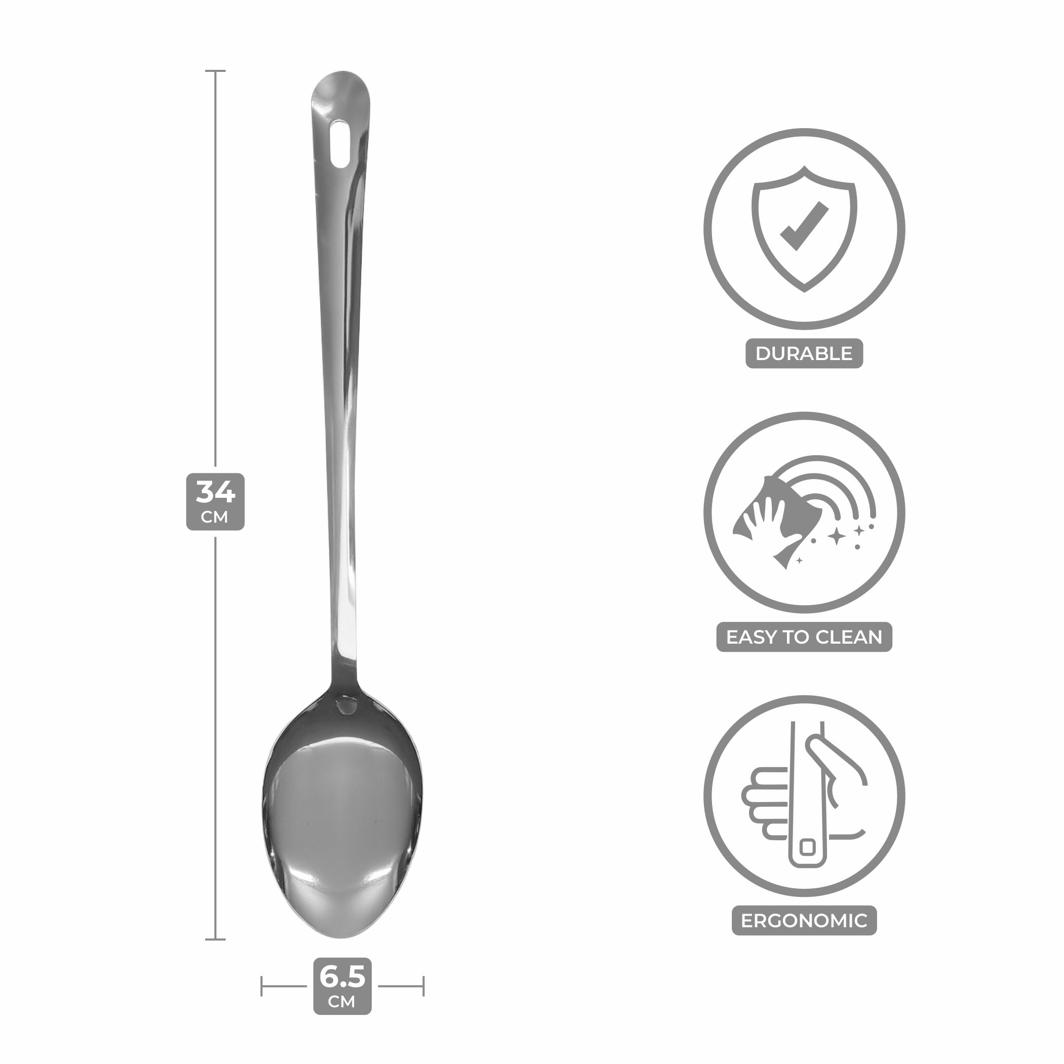 GENEROUS DIMENSIONS: Measuring 34 cm in length and 6.5 cm in width, this serving spoon offers ample capacity for serving soups, stews, curries, and other dishes